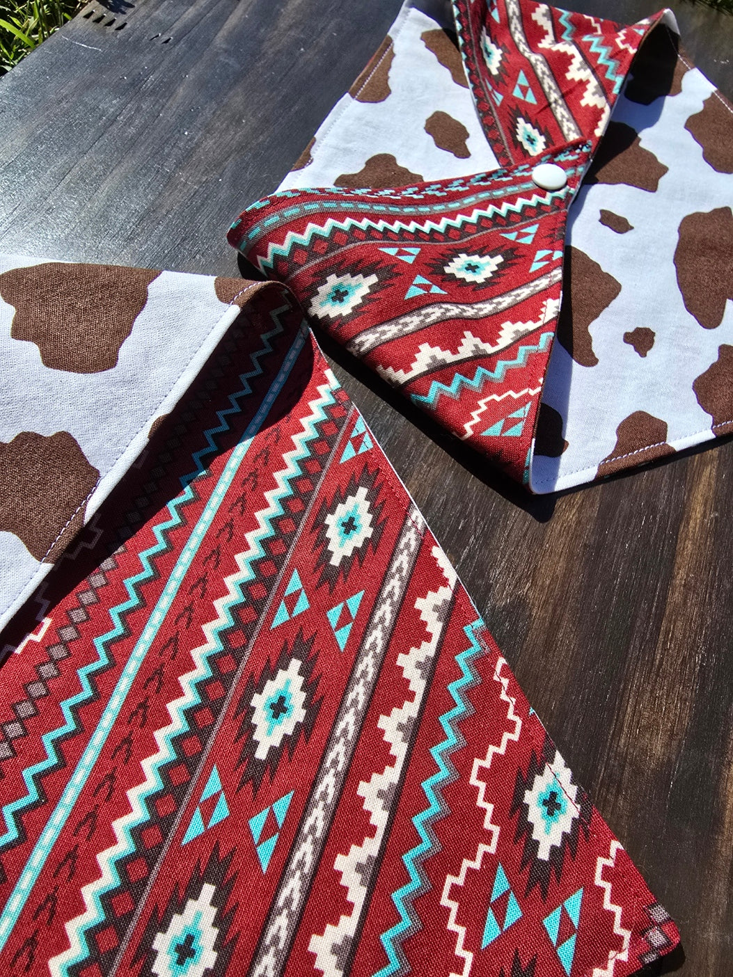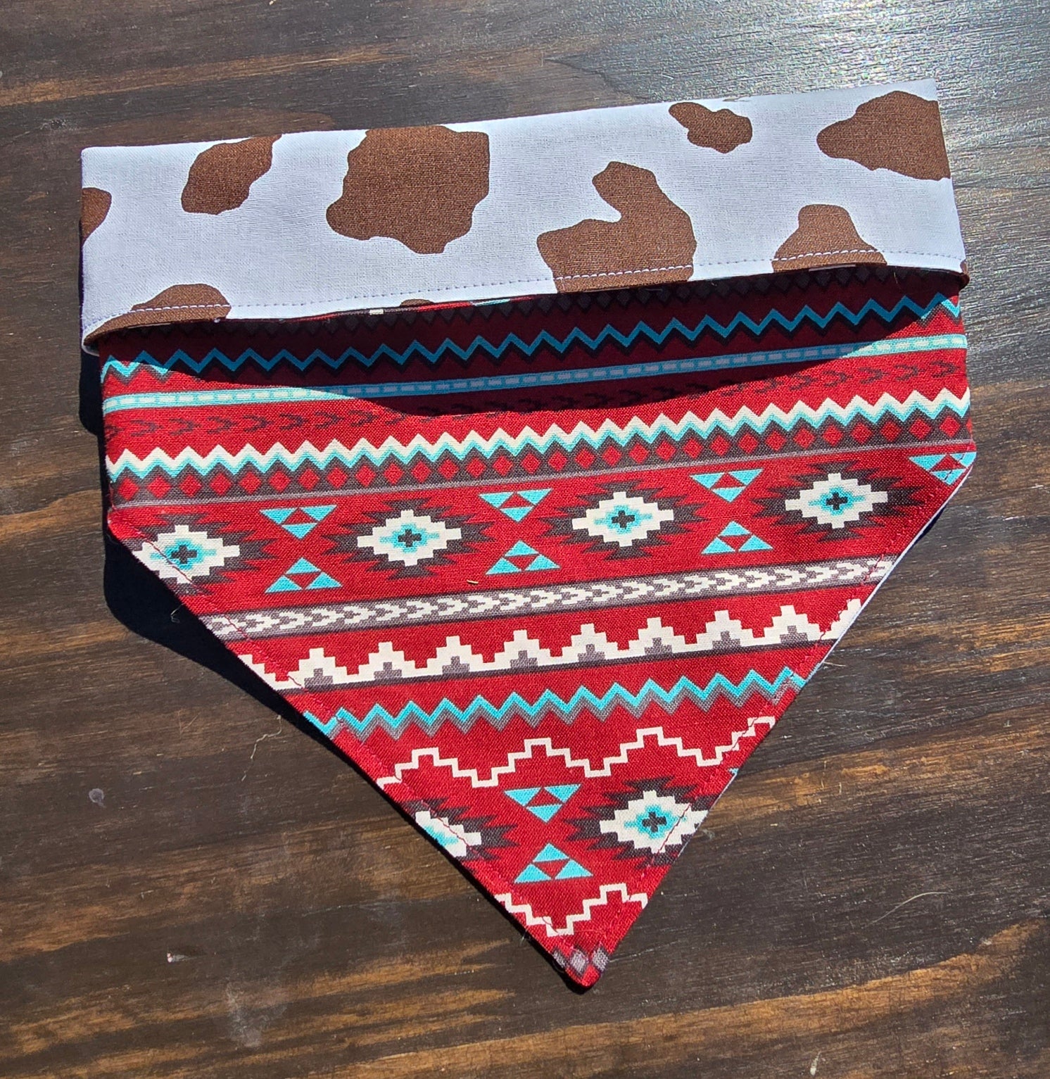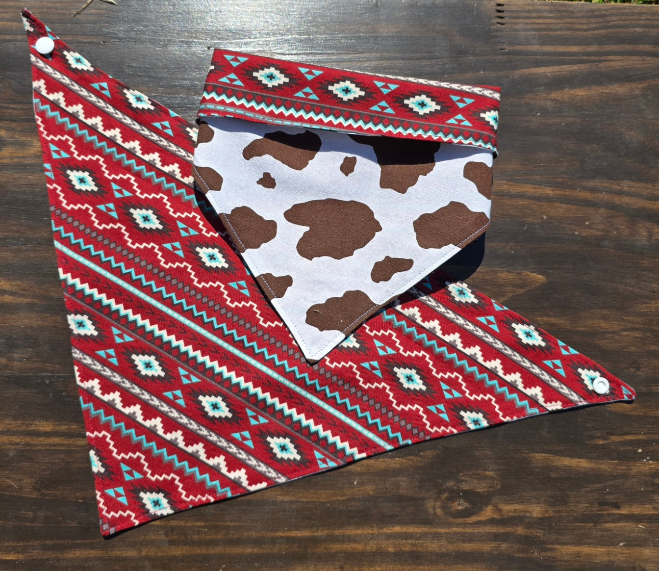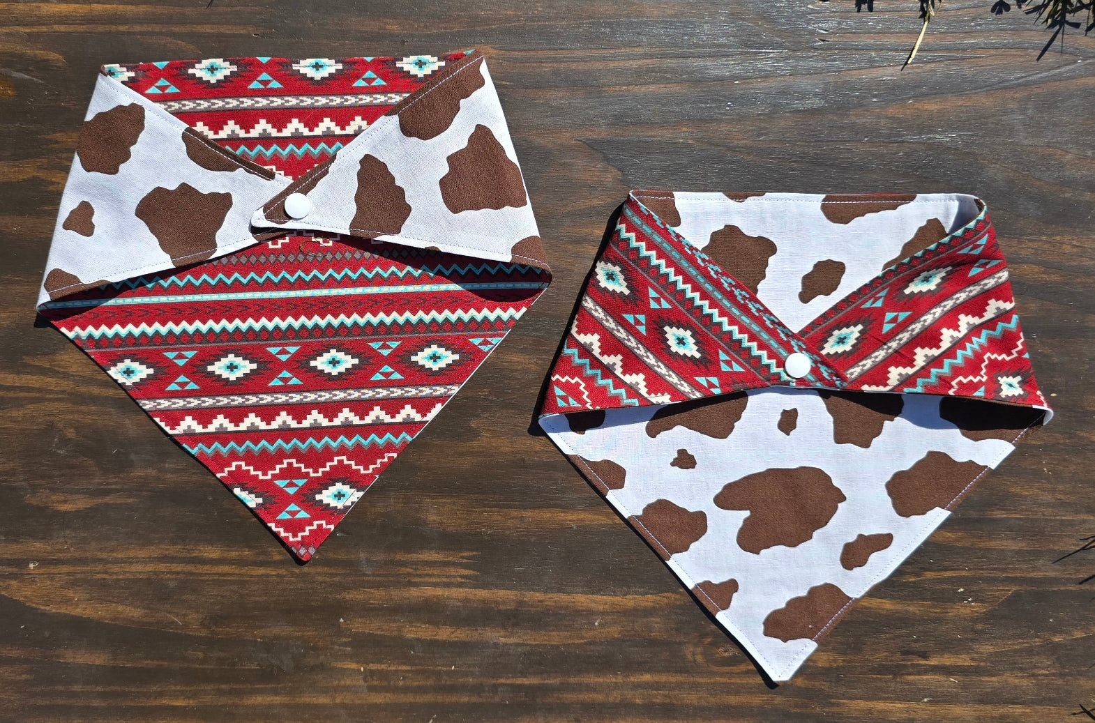 Snap-on reversible Bandana Patchwork and cow print. For Dogs, Puppies, Cats, and Kittens! Country-inspired Everyday Reversible Snap-on Pet Bandana: Personalize it any way you'd like! Matching poop bag holders available! Add personalization to any bandana with the "Bandana Personalization" listing