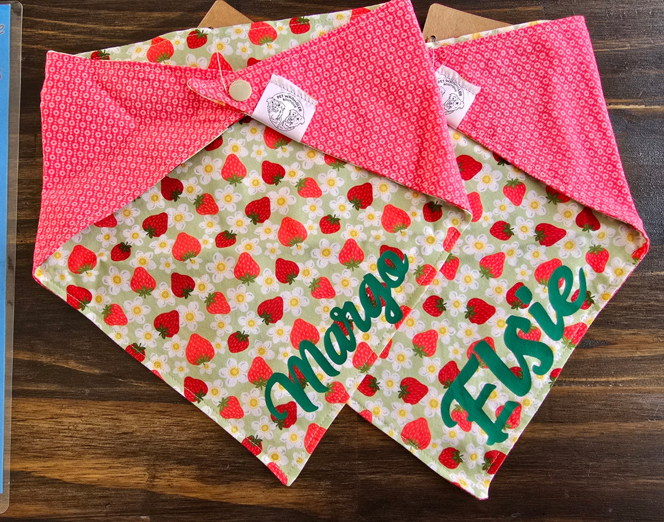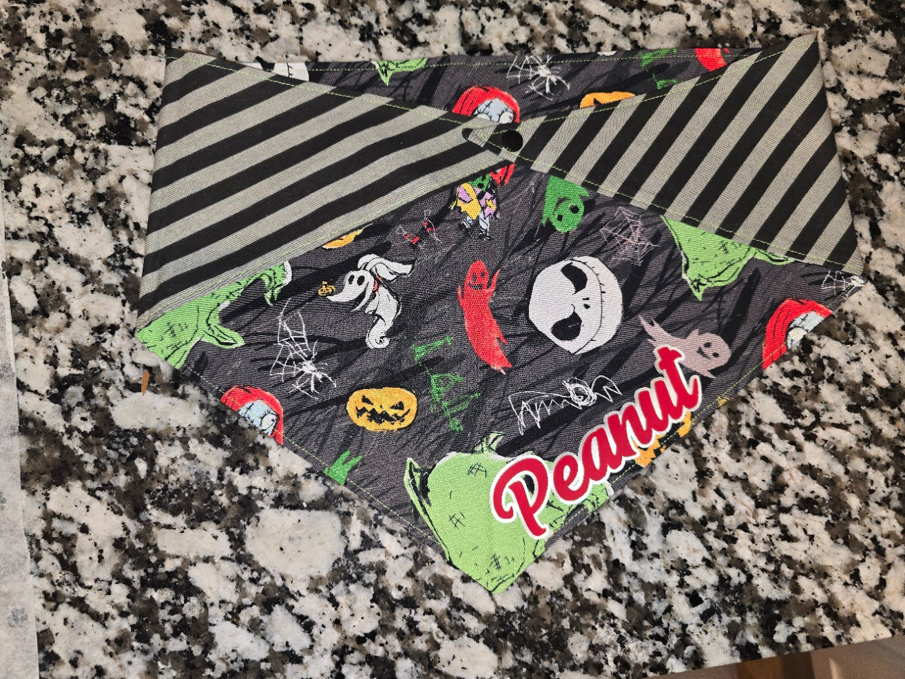 Add personalization to a bandana. It can be a name or saying added to one side of a bandana. If you would like the vinyl layerd with htwon colors please specify on line 2.
