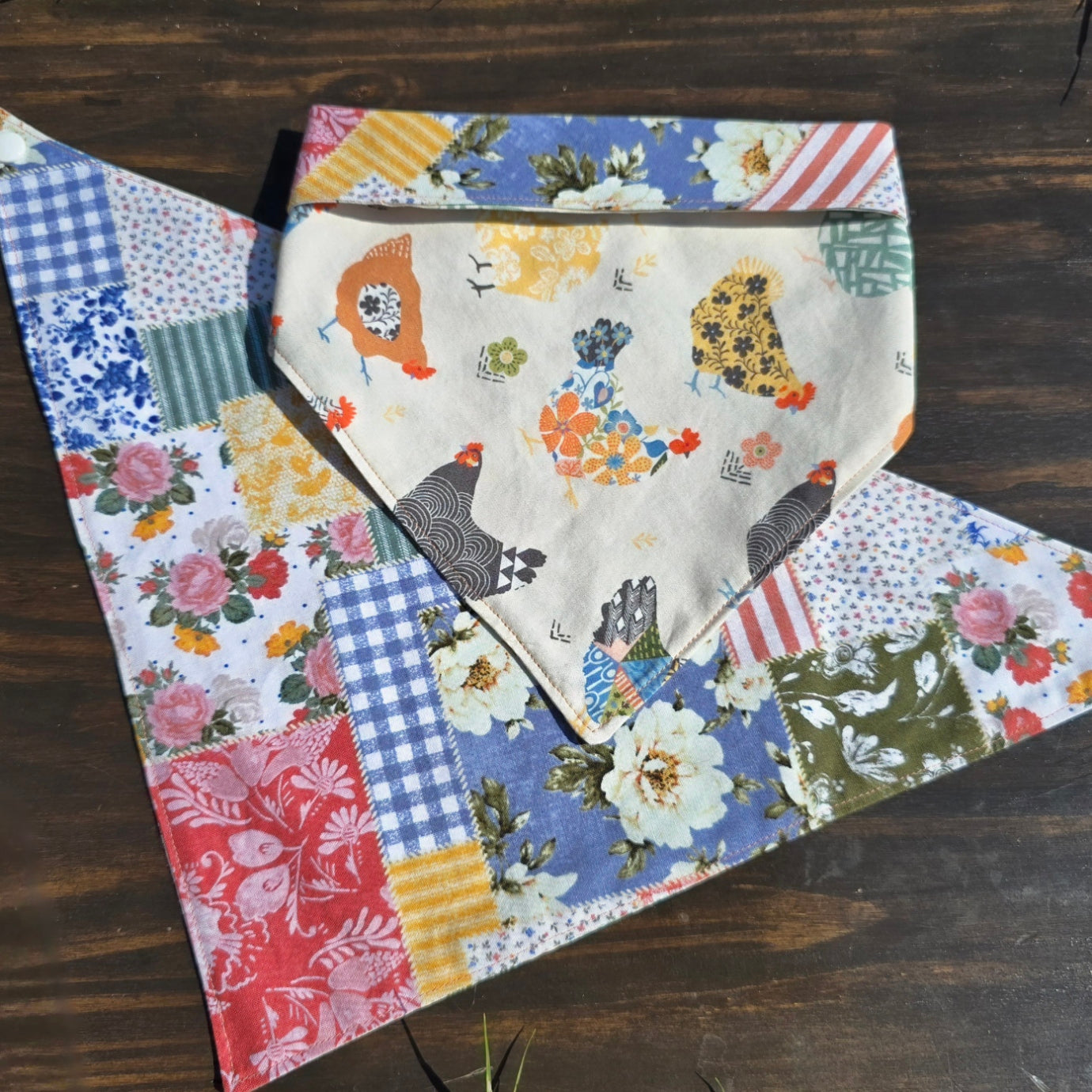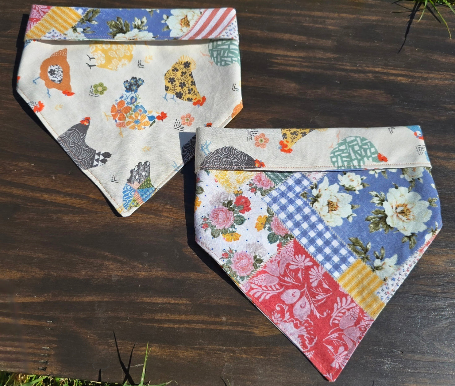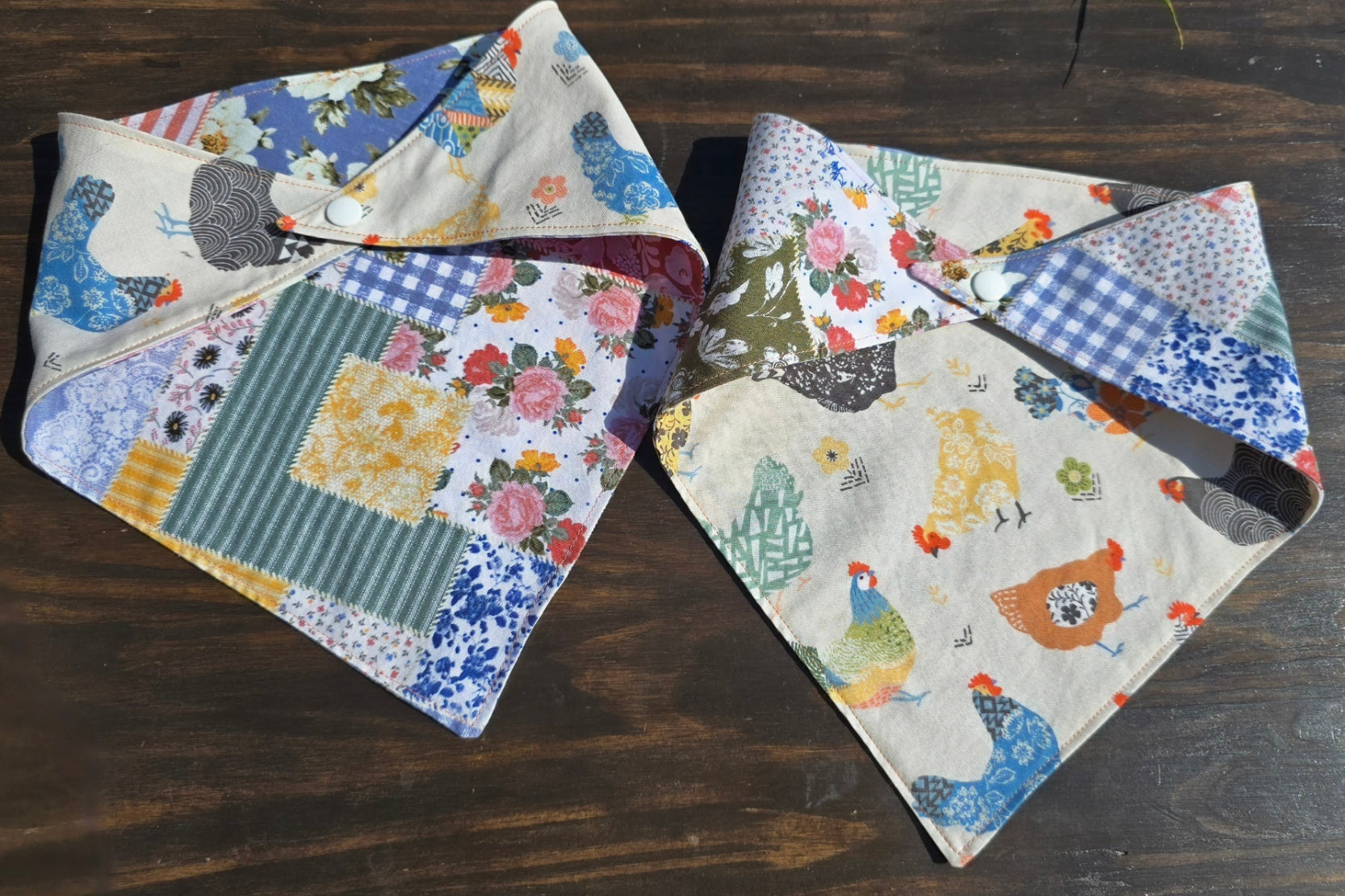 This adorable patchwork and chicken bandana is the perfect everyday bandana for the country pup! It’s reversible and snaps on, so it’s easy to put on and take off. Plus, it can be personalized just for you! Add personalization to any bandana with the "Bandana Personalization" listing
