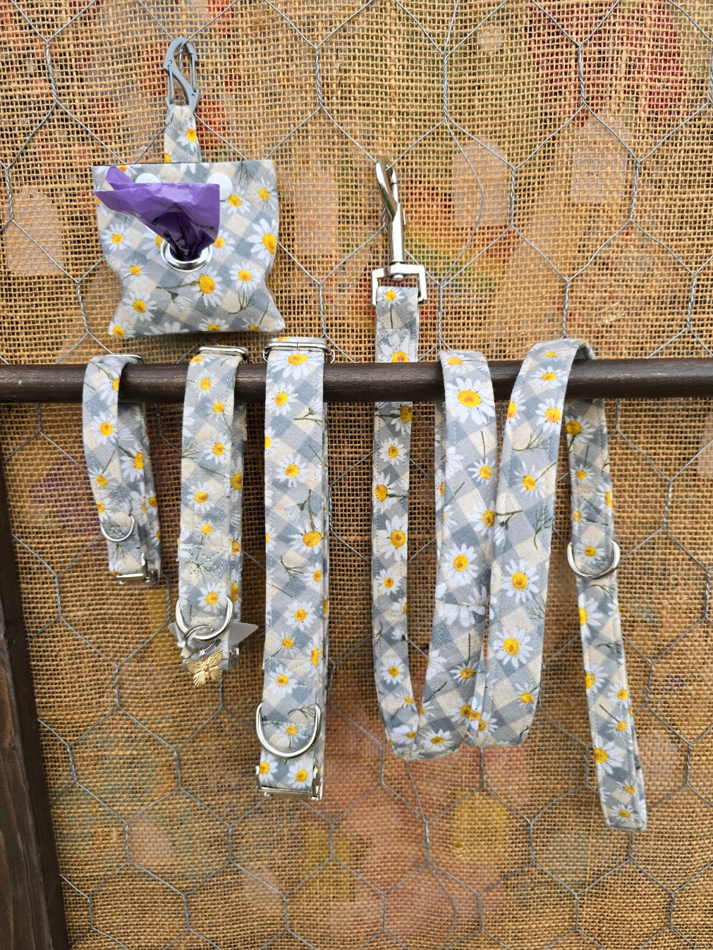 One side showcases daisy's on a blue plaid background, and the other is a green floral print! Add personalization to any bandana with the "Bandana Personalization" listing