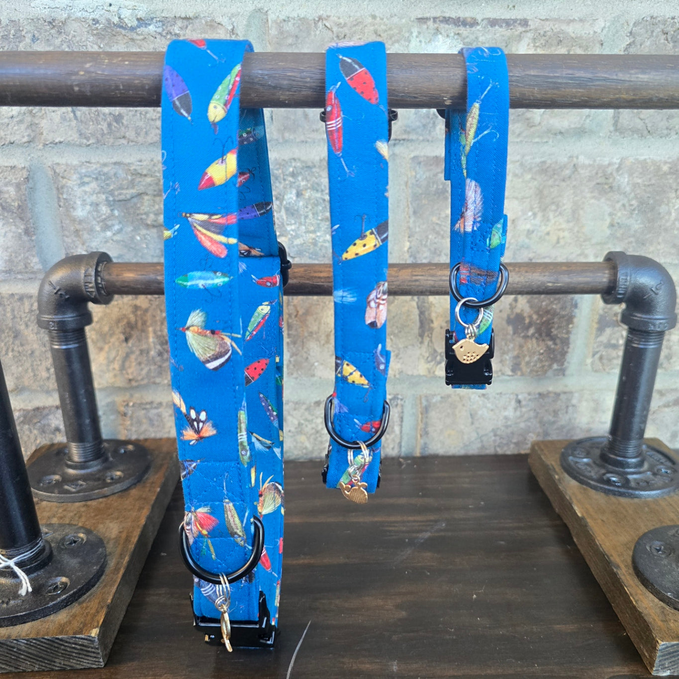 The collar snaps together with a side-release buckle and is adjustable! The leash clips onto the collar and has a ring to hold a matching poop bag holder! CHECK OUT OUR MATCHING BANDANAS & COORDINATING LEASH! *Collars are hand-made. Supply is limited*