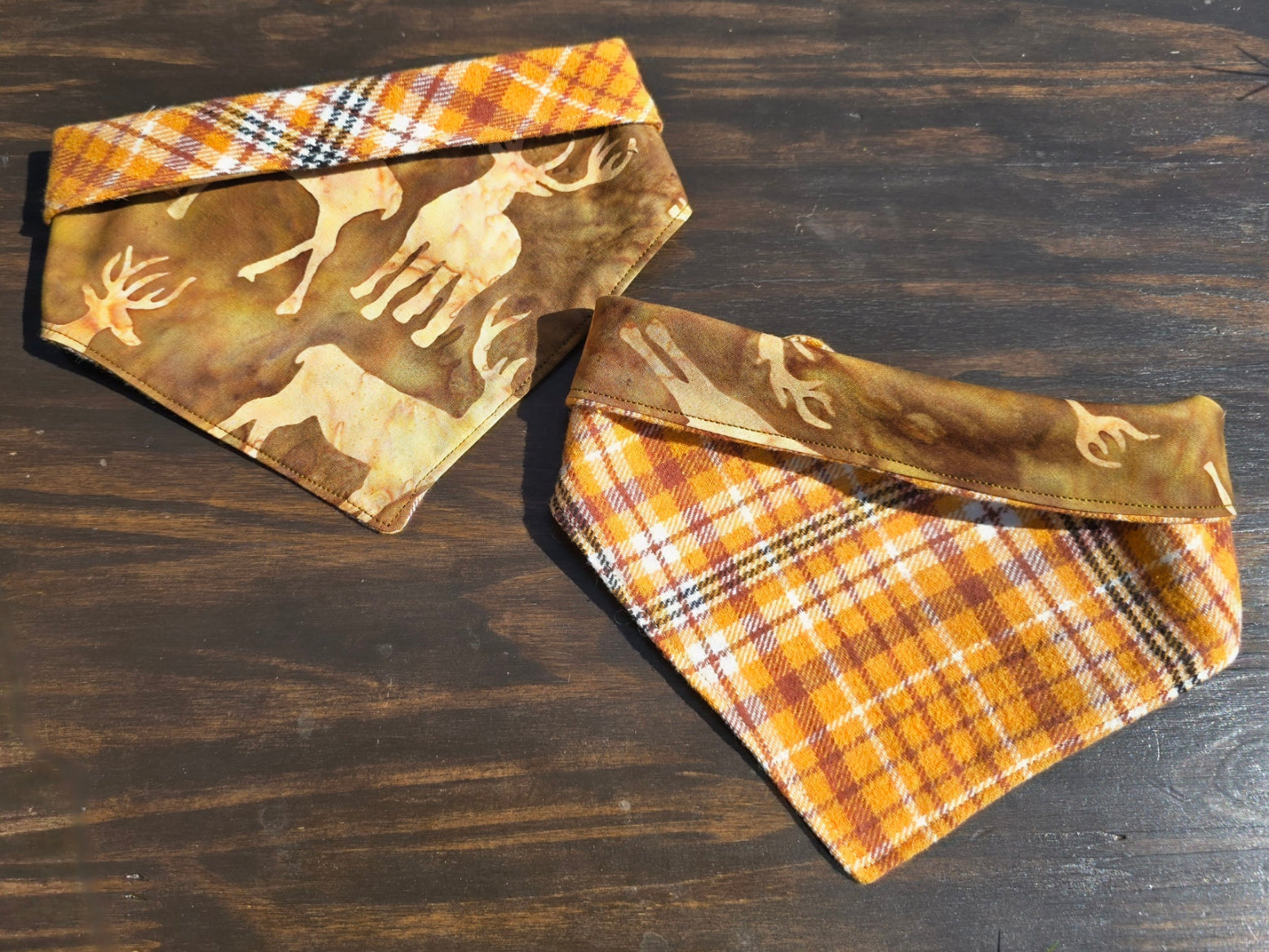 Get your pet ready for the fall season with this reversible Camo Deer and Plaid Flannel Bandana! Suitable for dogs, puppies, cats, and kittens, you can personalize it however you want. And the best part? It snaps on for easy wear! (Your fur baby will thank you!) Add personalization to any bandana with the "Bandana Personalization" listing