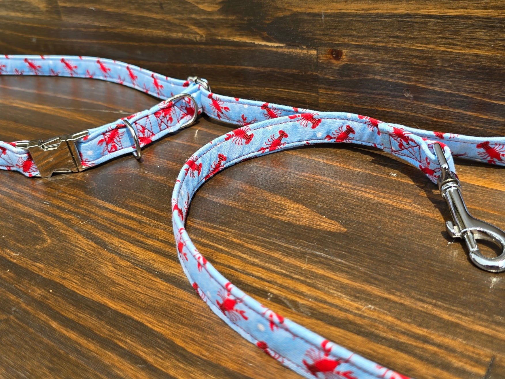 Add a splash of coastal charm to your daily dog walks with our Hands-Free Lobster Dog Leash! This leash features a vibrant pattern of red lobsters on a sky-blue background—perfect for seaside strolls, summer outings, or just showing off your pup’s playful style.