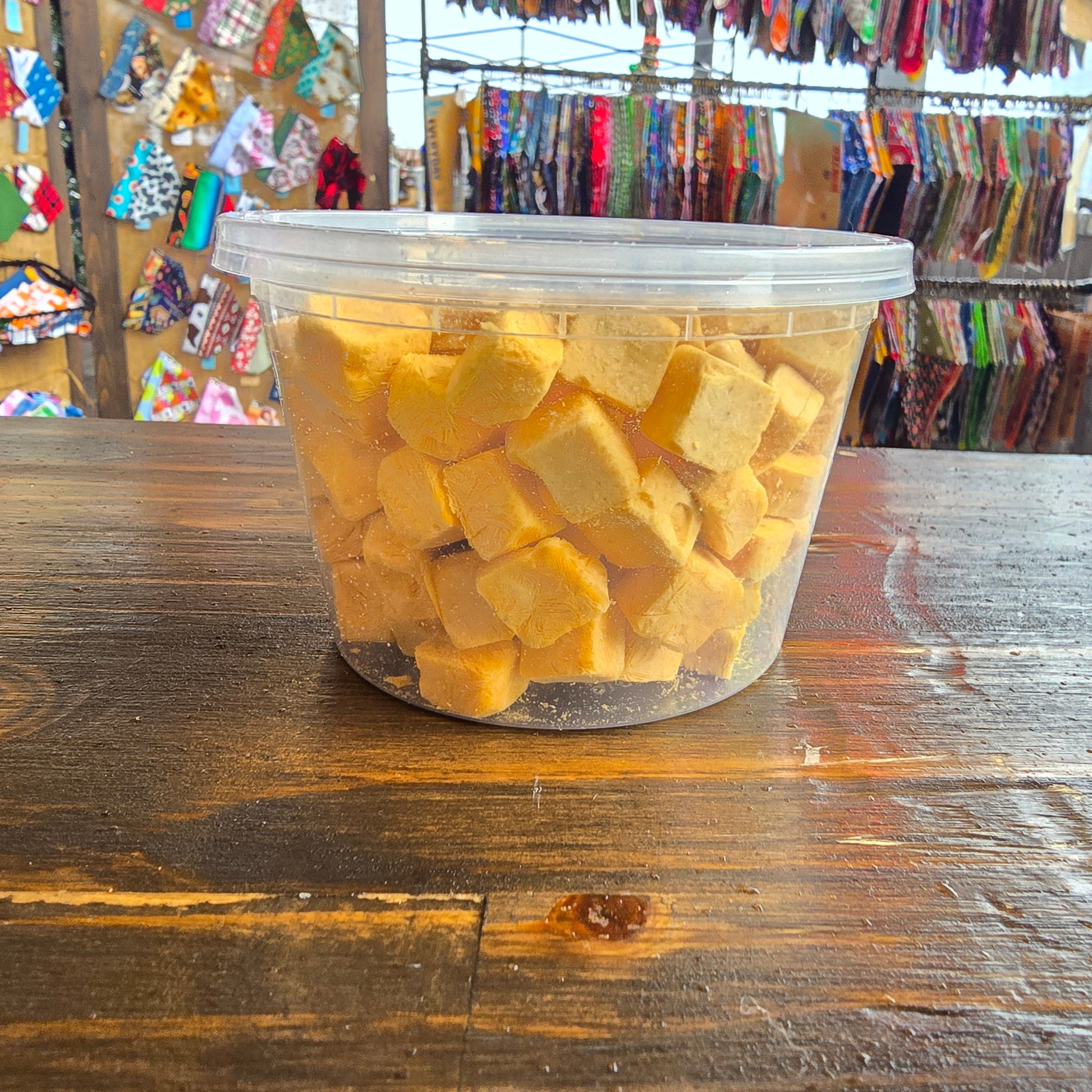 Freeze-dried pet treats made with yogurt and pumpkin. These treats are super soft and melty. Megaesophagus friendly!